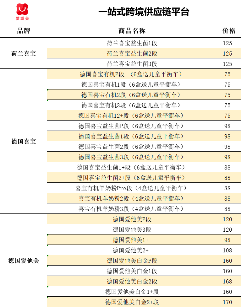 德国喜宝各品类备货充足