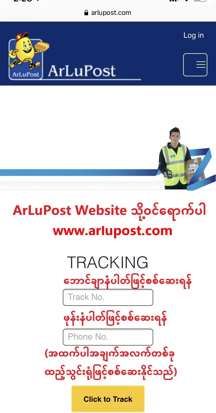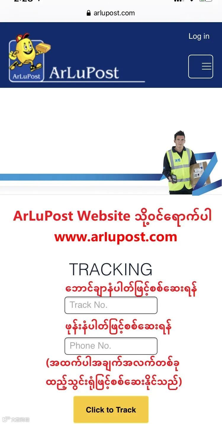 www.arlupost.com တွင် tracking No. (သို့) Phone No. ဖြင့်စစ်ဆေးနိုင်သည်။