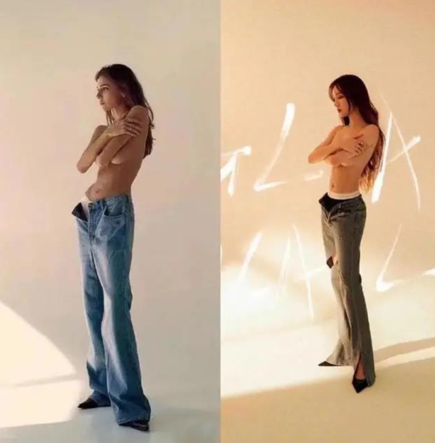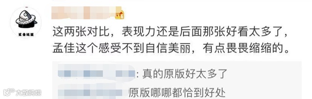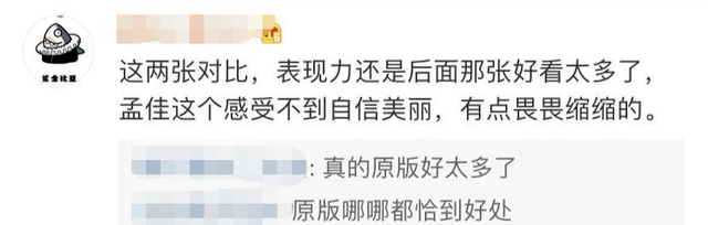 网友也纷纷吐槽,和先前的模特照片相比较,孟佳的毫无张力和美感。