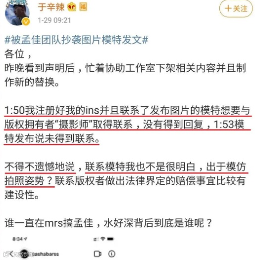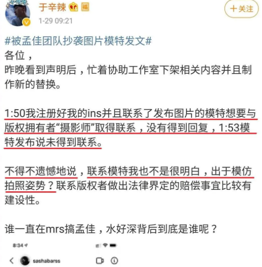 可笑的是,29日上午,孟佳的摄影师发微博称他凌晨1:50分去联系了该博主,