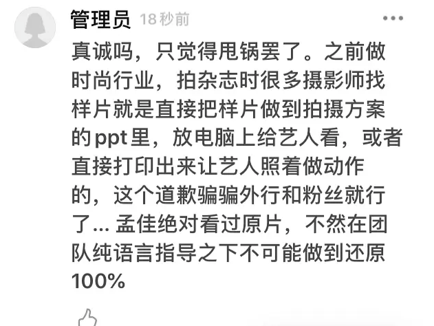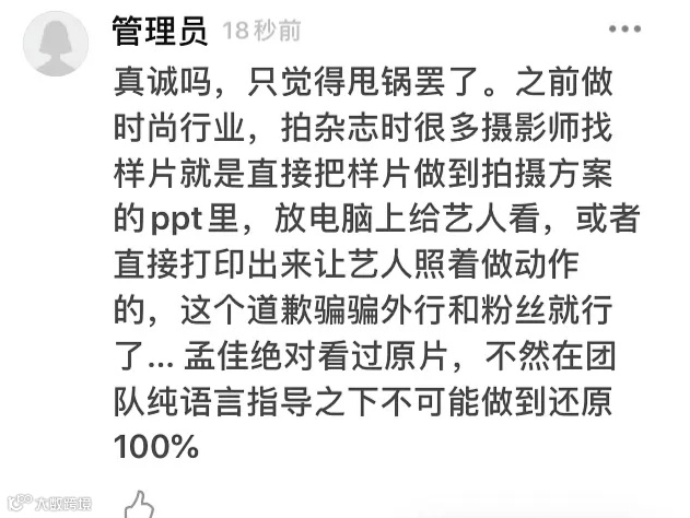 也有从业人士指出,孟佳绝对看过原片,不然不可能做到100%还原。
