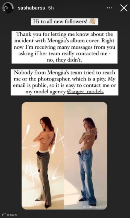 被抄袭的原INS博主发动态称还未收到来自孟佳团队的任何消息,并表示自己的工作邮箱是公开的,并不存在联系不上的情况。