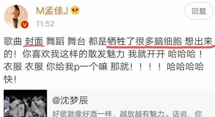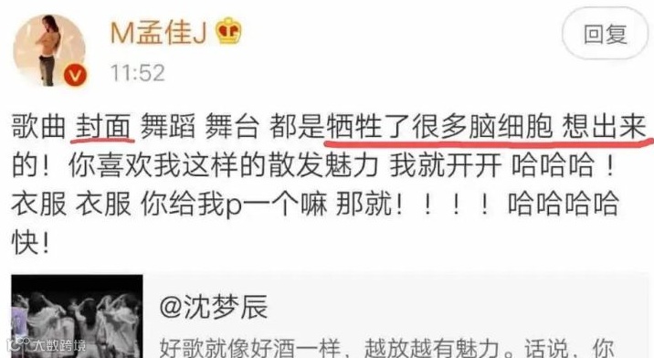 打脸的是,被扒出抄袭之前,孟佳曾说从歌曲、封面、舞蹈甚至舞台,都是牺牲很多脑细胞想出来的。