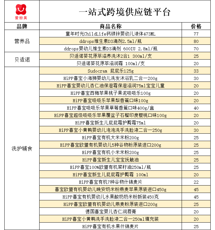 【辅食洗护】10月24日汇总表 爱纷美全球购