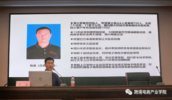 跨境电商产业学院客座教授,绍兴蒲公英电子商务有限公司董事长陈鑫向