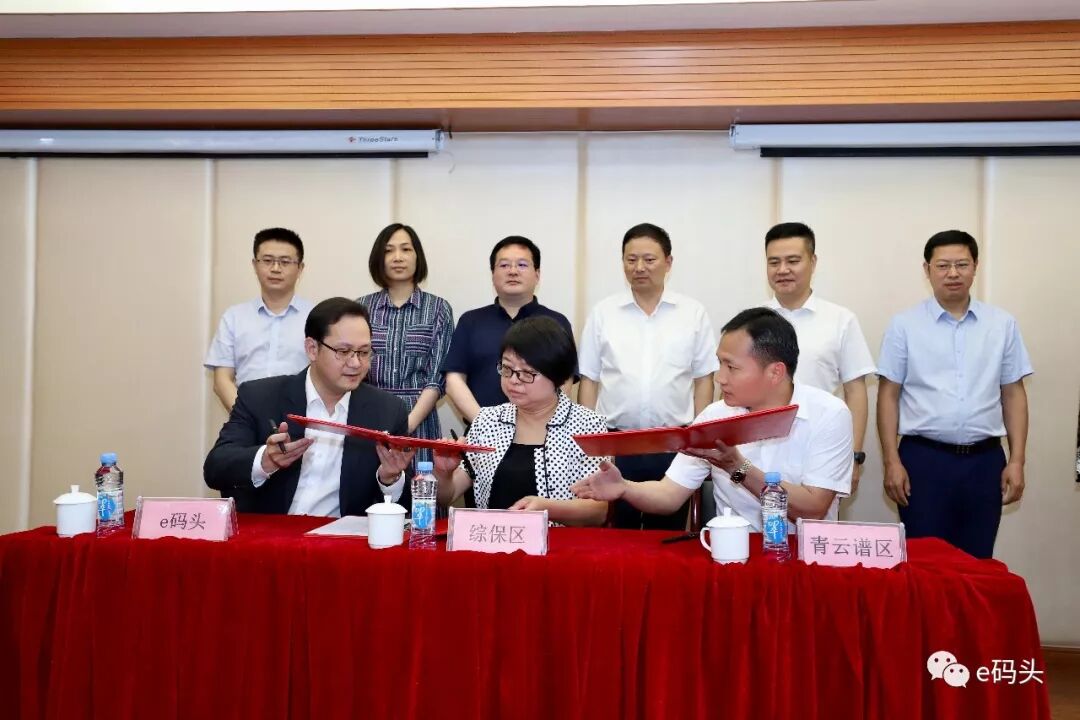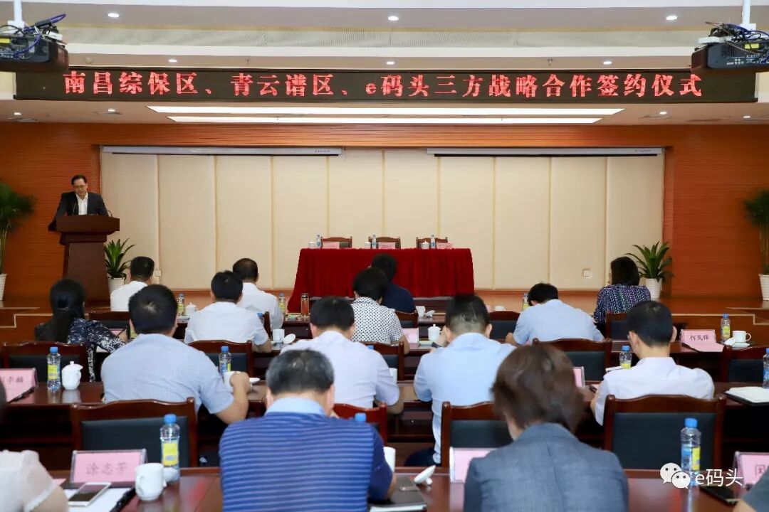2019年7月13日,南昌综合保税区、青云谱区与深圳前海电商供应链管理有限公司(e码头)三方战略合作签约仪式,在南昌综合保税区管理委员会顺利举行。南昌综保区管委会党组书记、主任吴斌,青云谱区委书记孙毅,青云谱区政府区长吴江辉等各相关部门领导出席并参加签约仪式。