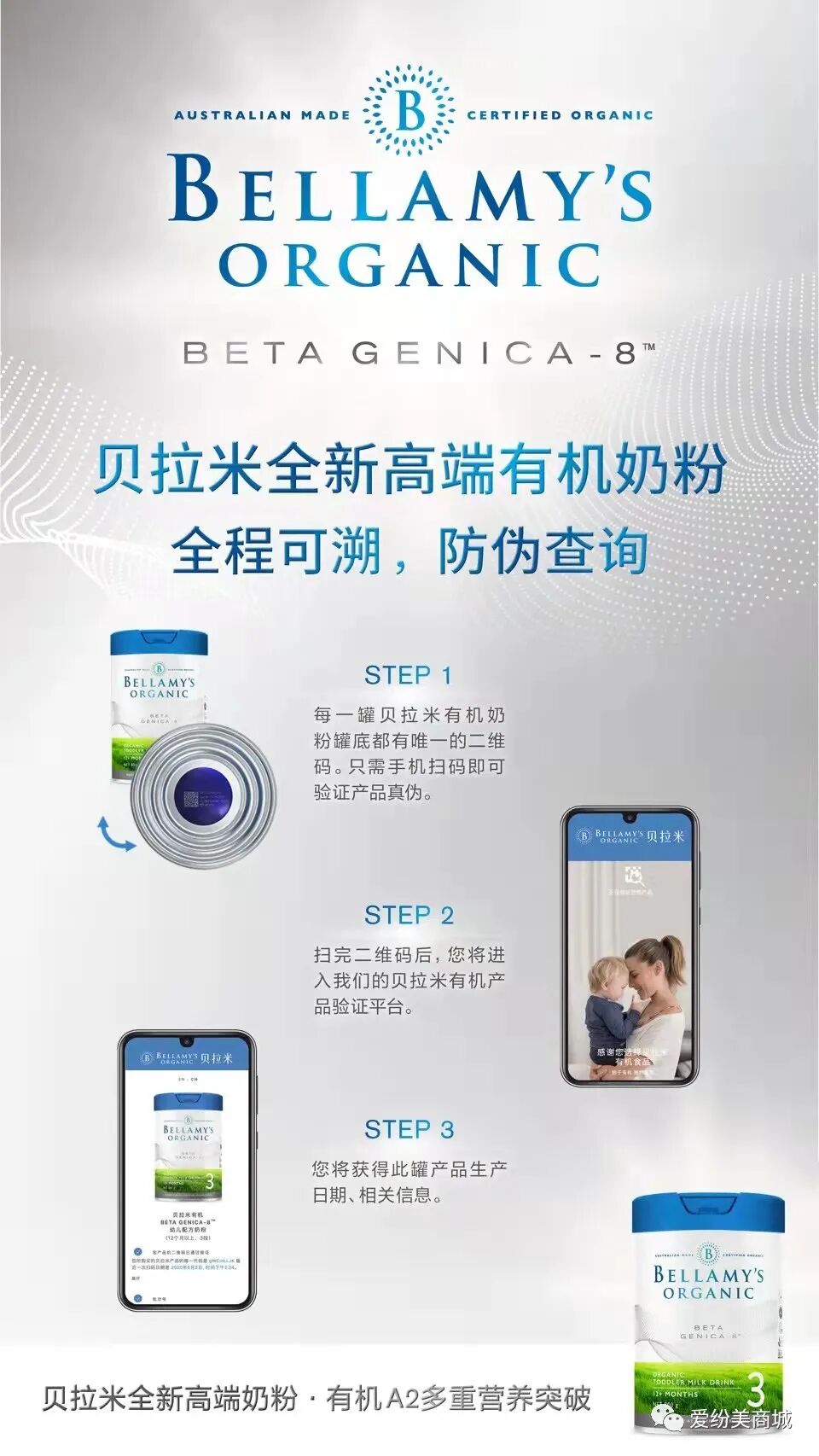 导读:贝拉米全新高端有机奶粉BETA GENICA - 8️,每罐奶粉底部也都有激光刻印的二维码
