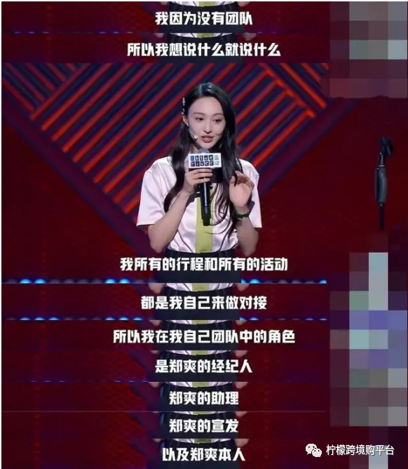 其次,郑爽自称自己“爽言爽语”的原因是自己没有团队,自己想说什么就说什么。