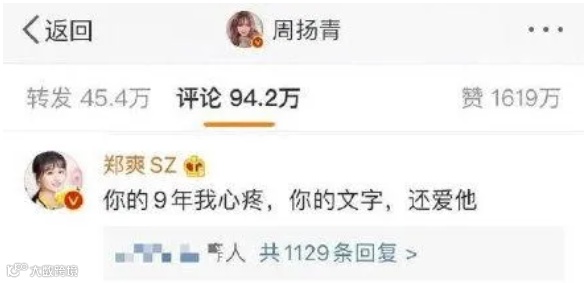 郑爽也不忘蹭下热度,在周扬青官宣分手的微博下,郑爽留了这么一条评论。