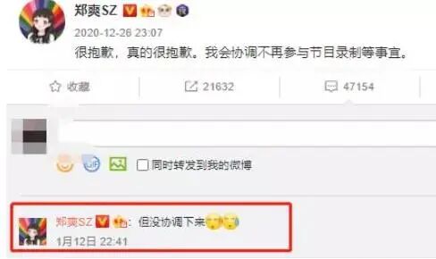 而后郑爽则发文表示要跟节目组“协商”退出节目的事宜~