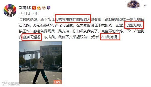 正当大家对她的行为感到匪夷所思,议论纷纷的时候,郑爽又跳出来发了条微博。