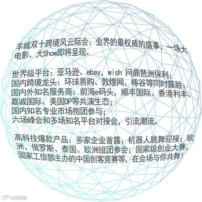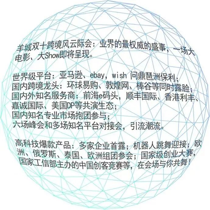 亚太倾情无私奉献年度盛会,AMAZON、EBAY、WISH三大平台对接会;四国跨境交流;六场跨境生态峰会;广东百强跨境企业集体亮相;万人现场观摩;重磅政商领袖出席;