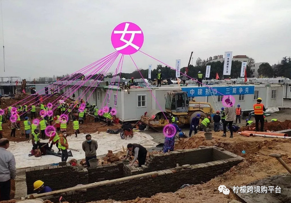 火神山的包裹严实的女工人,在钢筋混凝土的体力劳动中,长发女性占据一多半。