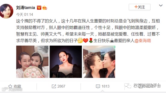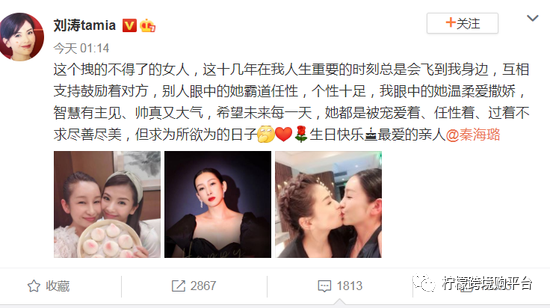 刘涛和秦海璐就是网友所说的“塑料姐妹”,今天是秦海璐42岁生日,刘涛作为秦海璐10多年的好友,赶在在凌晨发文为秦海璐庆生。