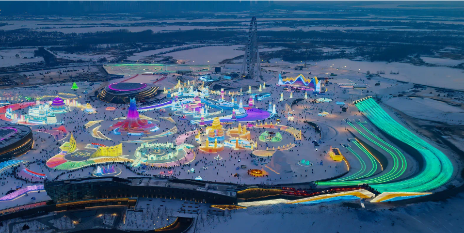 (以上图片来源于哈尔滨冰雪大世界、人民日报、央视新闻)