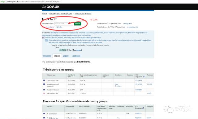 对于走海外仓模式的出口跨境电商企业定价方面有决定的性作用。对于出口到欧洲国家的商品,以出口到英国的平板电脑为例,查询网址为: