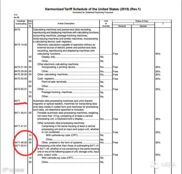 登陆该网址后我们可以看到相关的章节。以平板电脑HS CODE为例:8471499900;可以直接查询 Chapter 84,找到相关的8471499900 关税栏目,清楚显示其出口到美国的关税税率:
