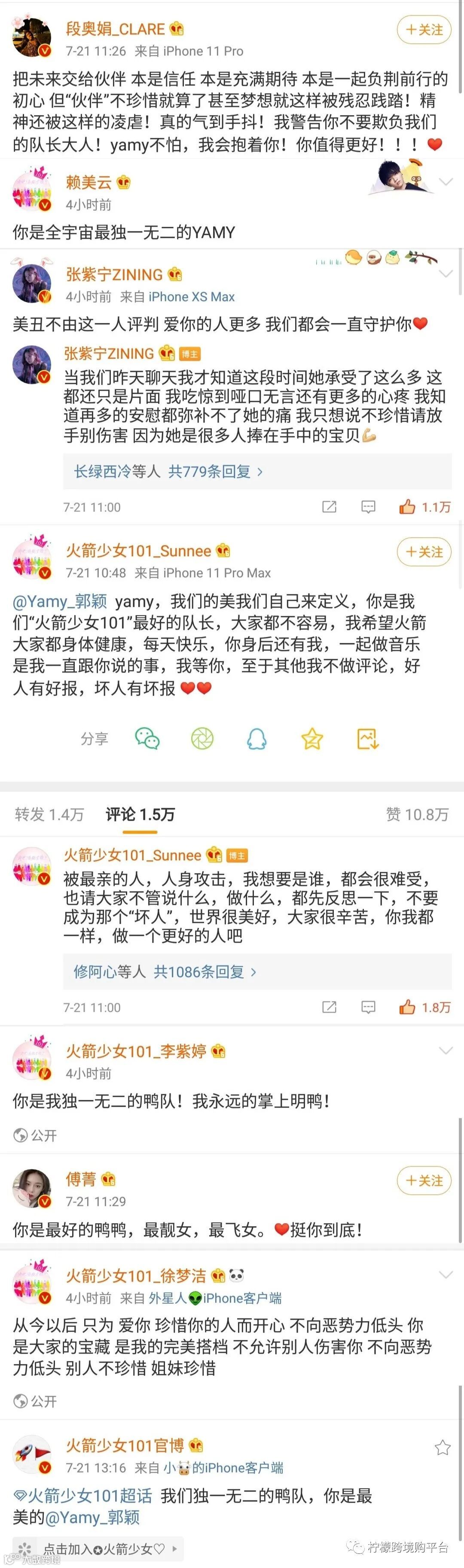 从侧面透露出她能出道并且当上火箭少女的队长,都是公司在操作,网友们也毫不客气直接说Yamy是做票咖。