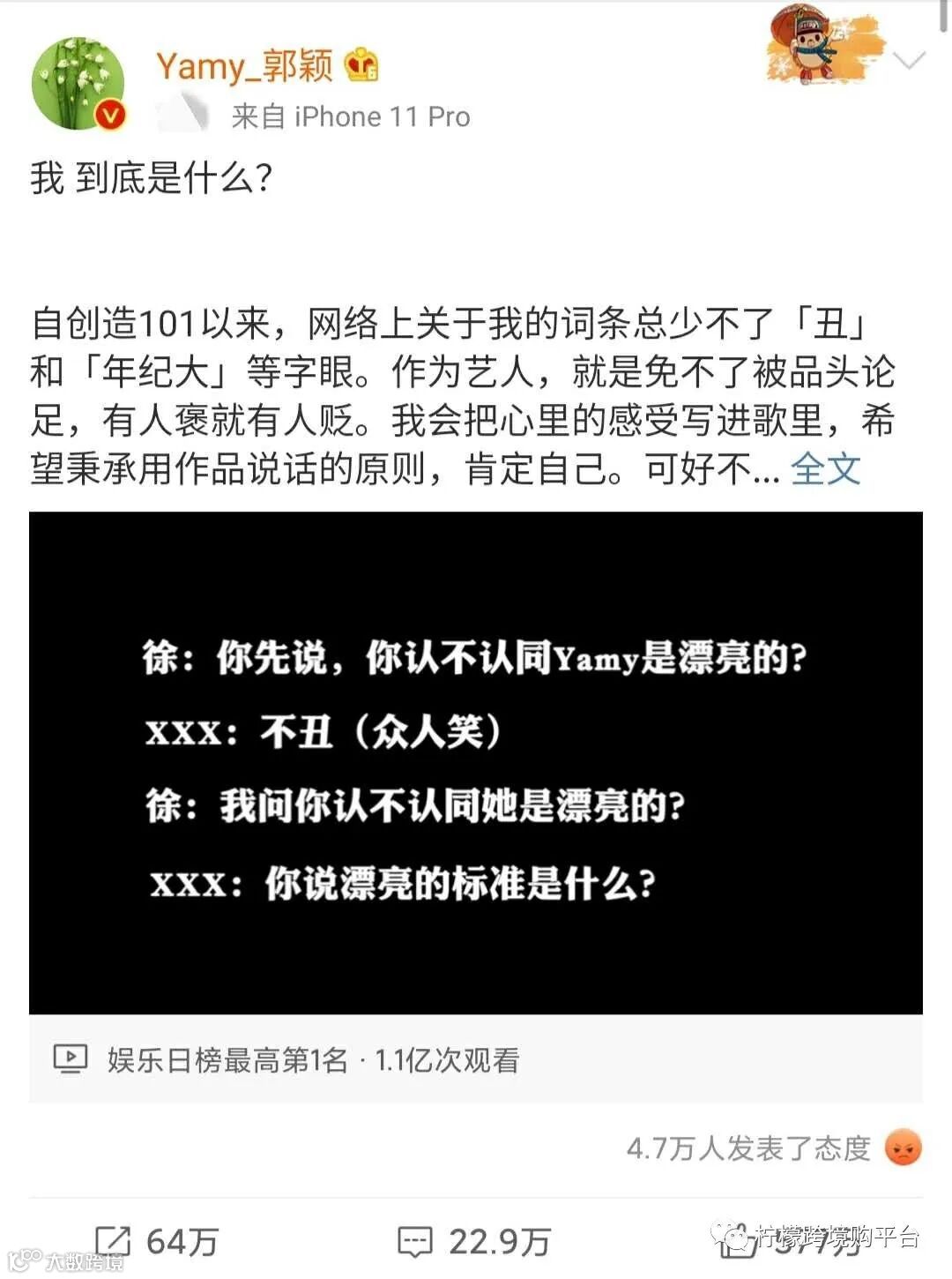 C位事件和这件事联系起来Yamy是还真是白眼狼,对给她买出道的公司恩将仇报,偷了别人的C位,偷了一个女孩的梦想。