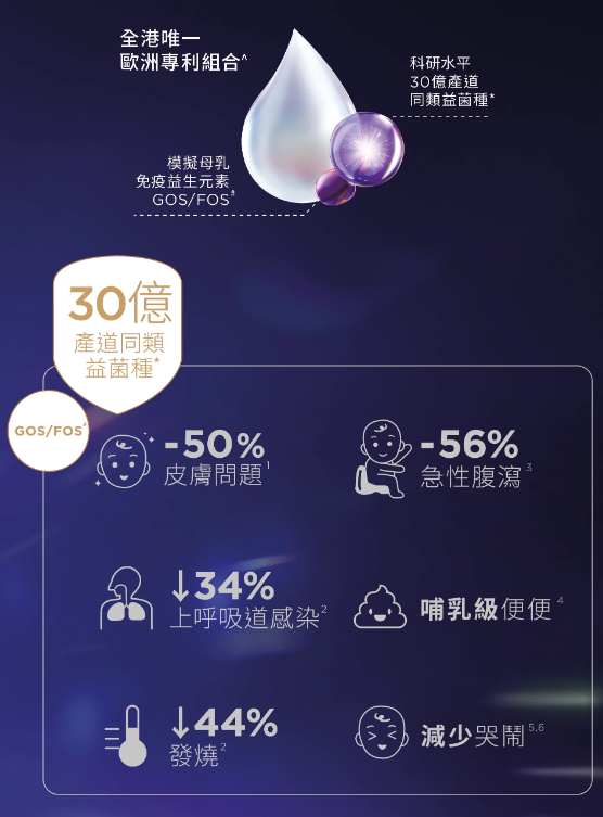 -科研水平30亿产道同类益菌种*及益生元GOS/FOS,能增加益菌数量,打好少病基础