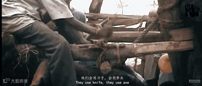 接着象夫用棍子、斧头、电击棒等任何一切让大象感到恐惧的工具,逼其屈服、妥协,做出人类指定的讨好观众的动作。