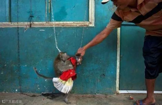 这位游客亲眼看到:一只练习跳火圈的猴子伺机逃跑,却忘了拴在脖子上的锁链,最后被拉回来在地上拖了好几米,之后一顿胖揍,一直被打到血肉模糊……