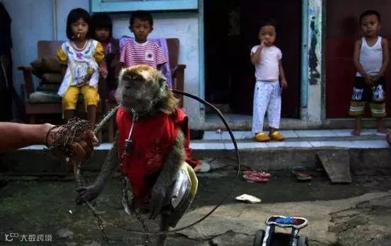 一位游客曾经深入印尼首都雅加达,追踪调查那些街头卖艺的猴子。
