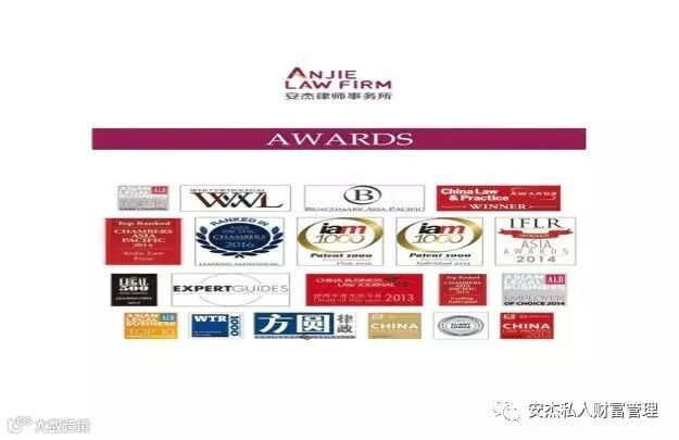 安杰财富管理团队拥有经验丰富的专业律师队伍。凭借跨境的专业知识储备及专业化的服务解决方案,团队在2016年Legal Band评奖中获评财富管理专业方向最有潜力律所。
