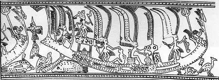 同时,也出土了铜制提筒。当中四面都各刻有海船一艘,每船羽冠人5位,船旁还饰以水鸟、海龟、海鱼。 图案中看到当时已经有了水密舱;这是目前见到世界最早的水密舱。 水密舱(港澳地区称为水密门)是把船舱分隔成数个互不相通的分区,这有三方面的功能:1)避免船舱一进水即整船颠覆、2)增强甲板承压的重量、3)增加船体结构横向刚度。