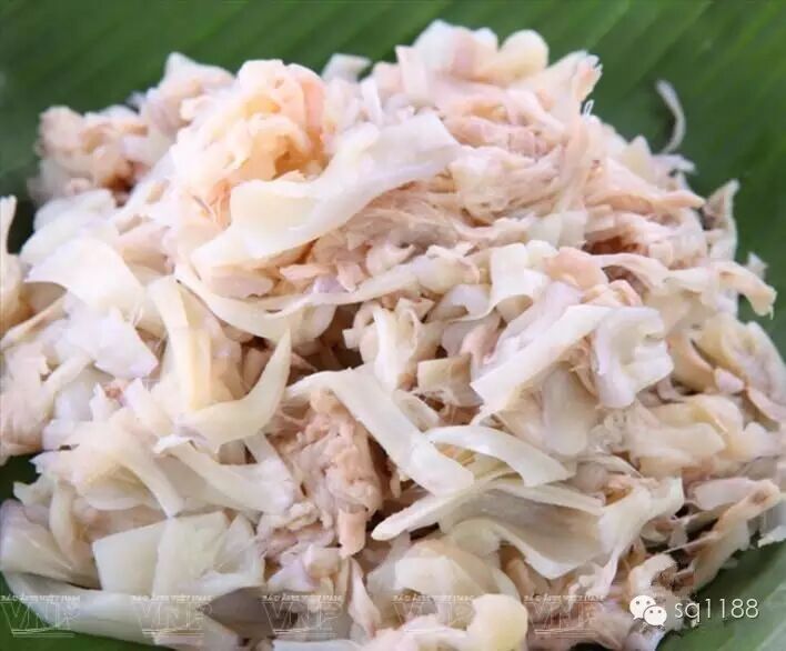 首先,将整个果子放入淡盐水中削去表皮,这样可保持果肉白色,不沾粘液。接着纵向切块,去掉内皮,洗净后煮熟捞出沥干,切成丝状。