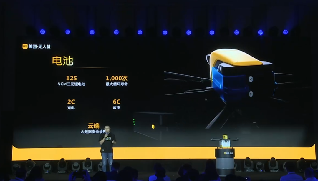 续航方面,美团第四代无人机配有两块电池,搭载 12S 三元锂电池,支持 2C 充电和 6C 放电。