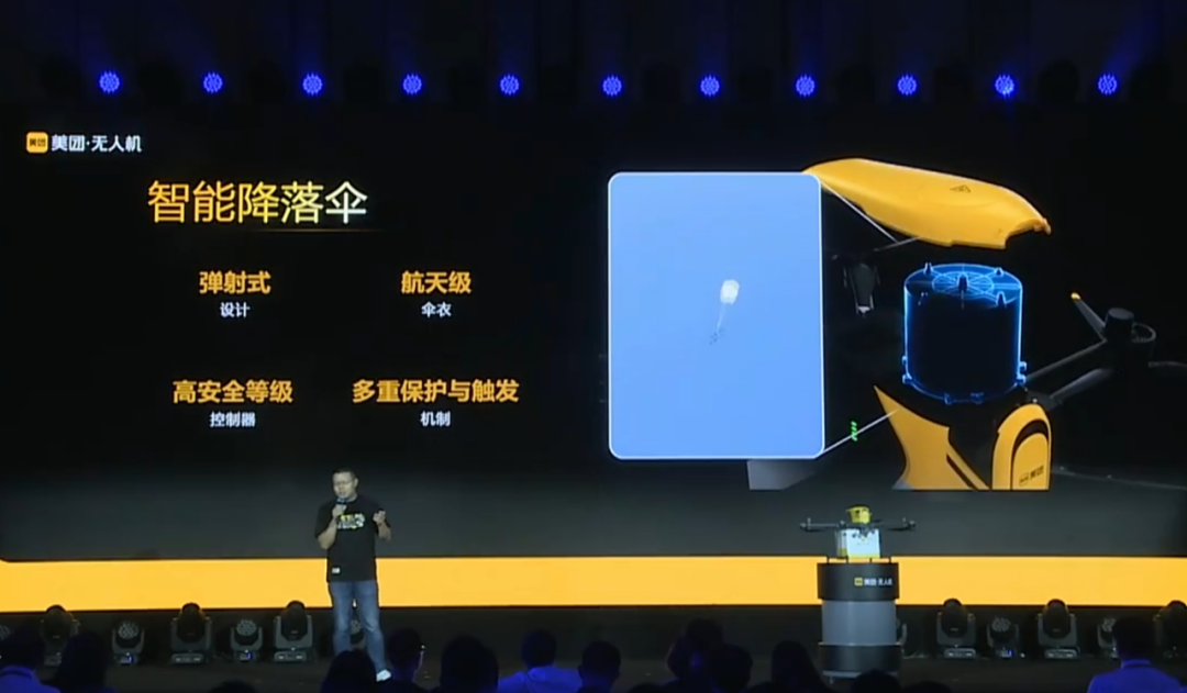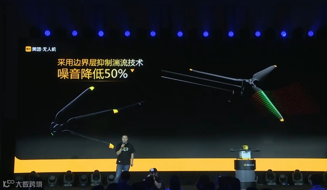 ▲ 图源美团无人机官方直播间(下同)此外,该无人机采用了六轴飞行器,相比上一代采用了可折叠设计,折叠后尺寸降低 49%;此外,美团第四代无人机将噪音降低了 50%。