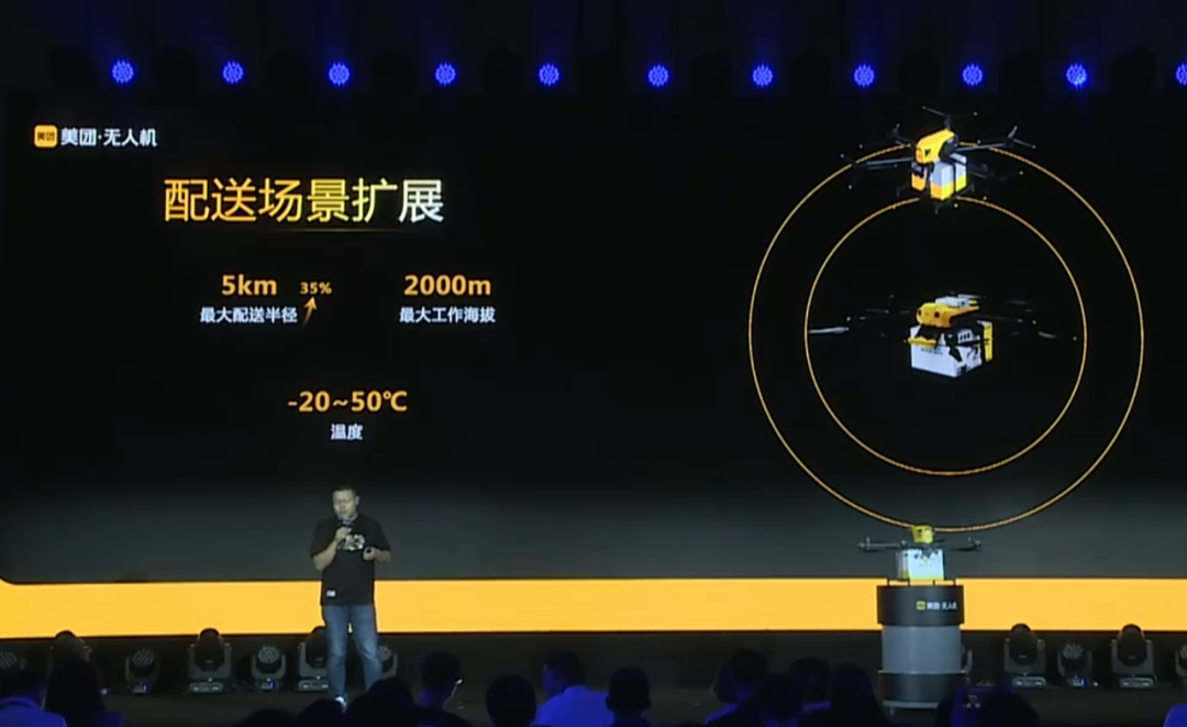 7月5日下午,美团第四代无人机正式发布,这是一款用于城市低空配送网络的小型多旋翼无人机,最大载重2.5kg,满载最大配送距离10km。