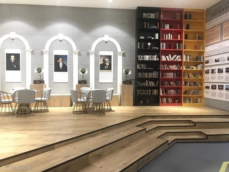 进门左走就是我们国家馆的图书区,墙上的名人介绍烘托出一种知识的氛围,逛累了在这坐着休息一会看看书也是一种不错的选择。
