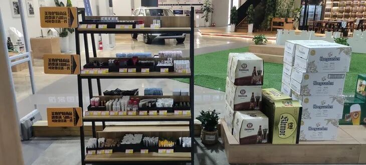 看到入口的第一感觉是简洁干净,没有特别浮夸的装饰,门口还陈列着我们这次美妆护肤全场8折的牌子。进门一辆德国配色的宝马就映入我们的眼帘,好家伙门口那么朴素进门就这么霸气,这款宝马是德国工业技术的象征。