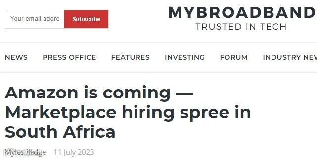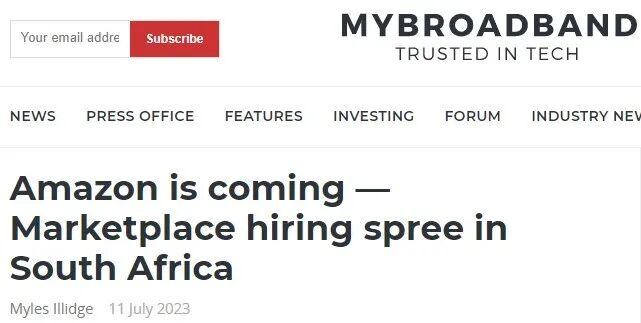 2022年1月,亚马逊被首次曝出在南非寻找建造仓库的场地;同年6月,亚马逊文件显示其计划在非洲、南美和欧洲的五个新国家扩张的消息,从而证实了其进军南非市场的计划。