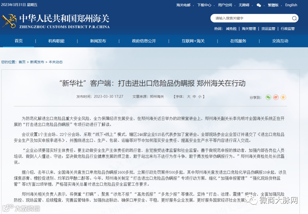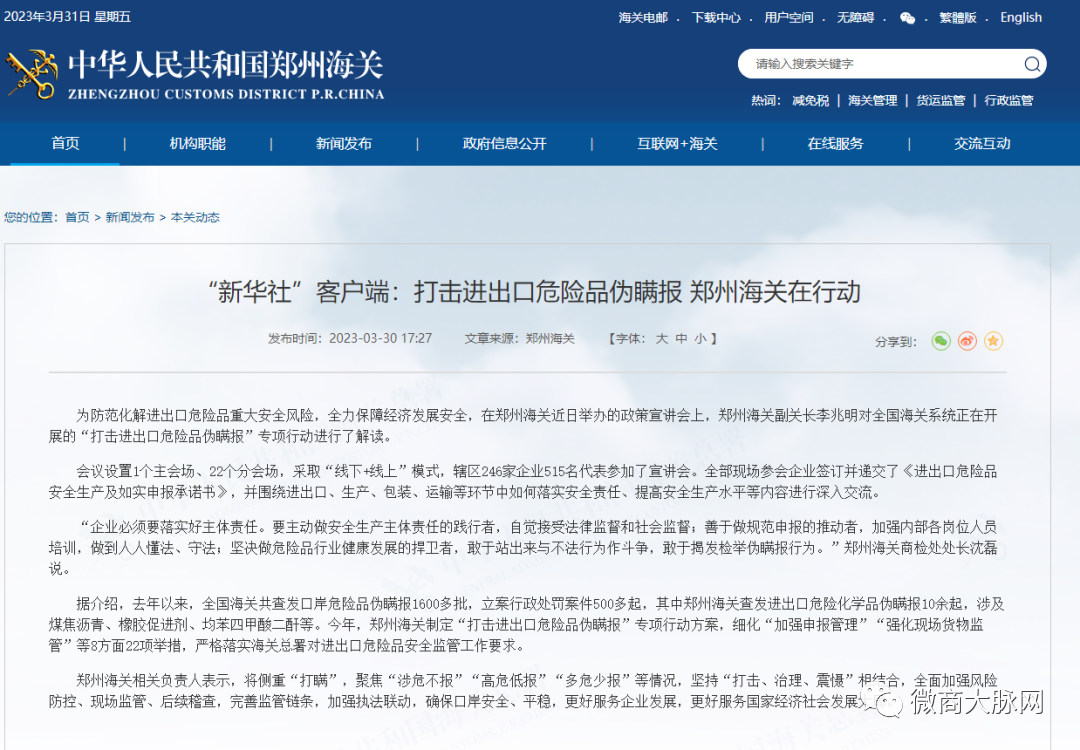 此外,3月20日,海关总署也宣布启动为期半年的“打击进出口危险品伪瞒报”专项行动。
