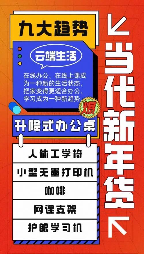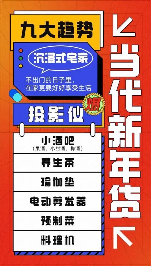 从智能产品的陪伴到短途旅行的松弛,从沉浸式宅家到云端生活,从关注免疫力到新年送健康,九大趋势透传出来的,是消费者在追求的多彩生活方式,是从物质到情感层面不断开辟出的新需求和新赛道。