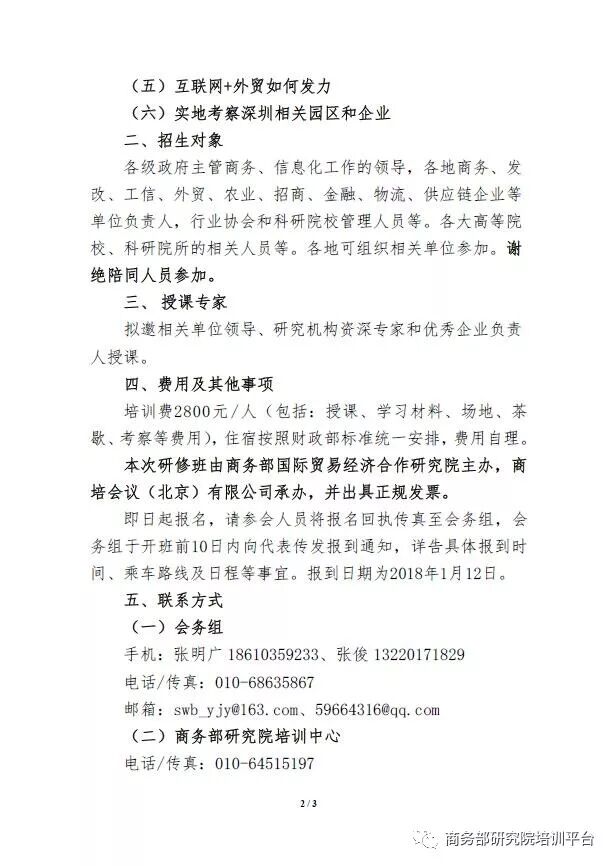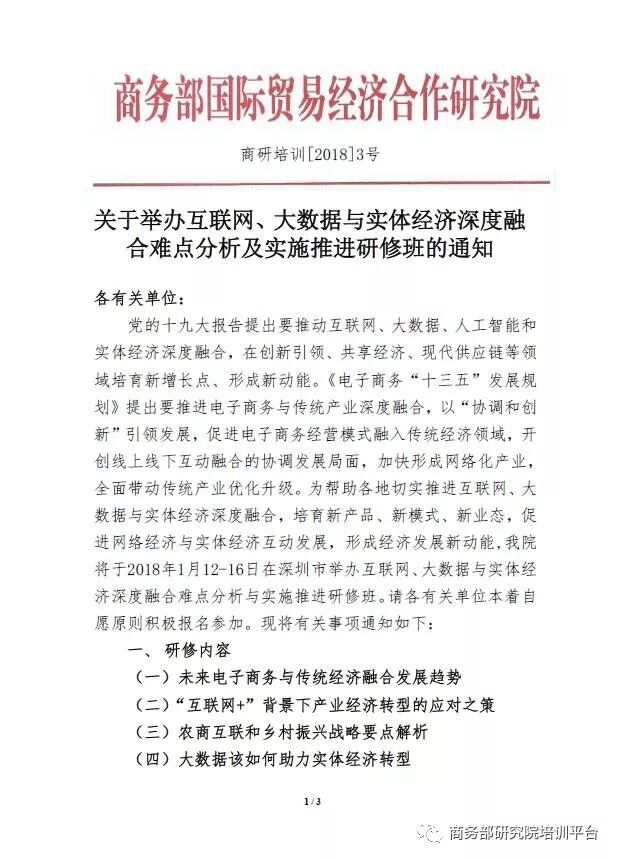 商务部研究院2018年1月份培训项目 关于举办互联网、大数据与实体经济深度融合难点分析及实施推进研修班的通知