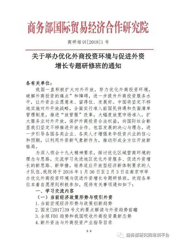 导读:关于举办优化外商投资环境与促进外资增长专题研修班的通知