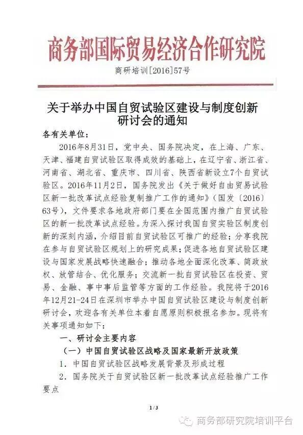 导读:关于举办中国自贸试验区建设与制度创新研讨会的通知