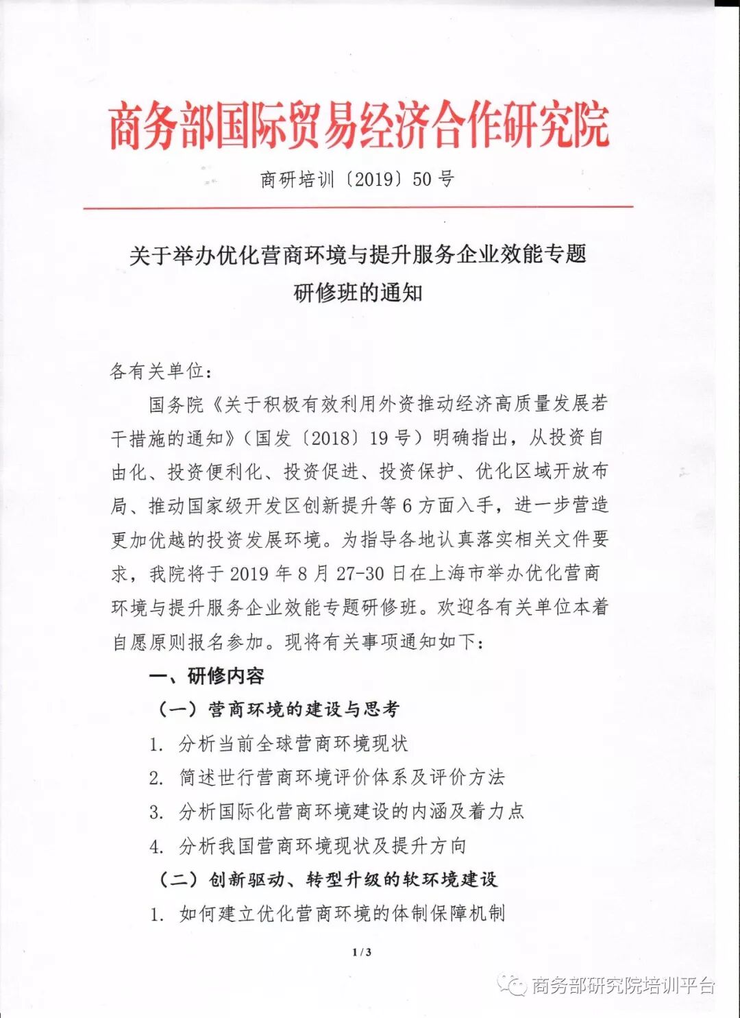 导读:关于举办优化营商环境与提升服务企业效能专题研修班的通知