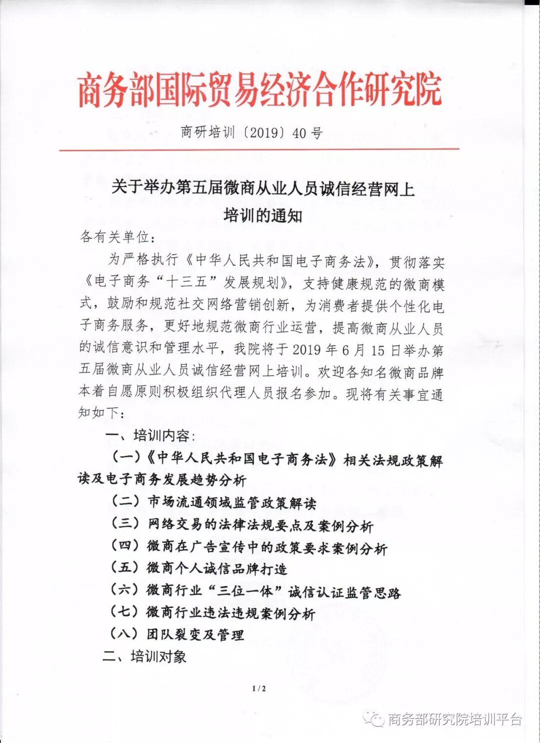 导读:关于举办第五届微商从业人员诚信经营网上培训的通知