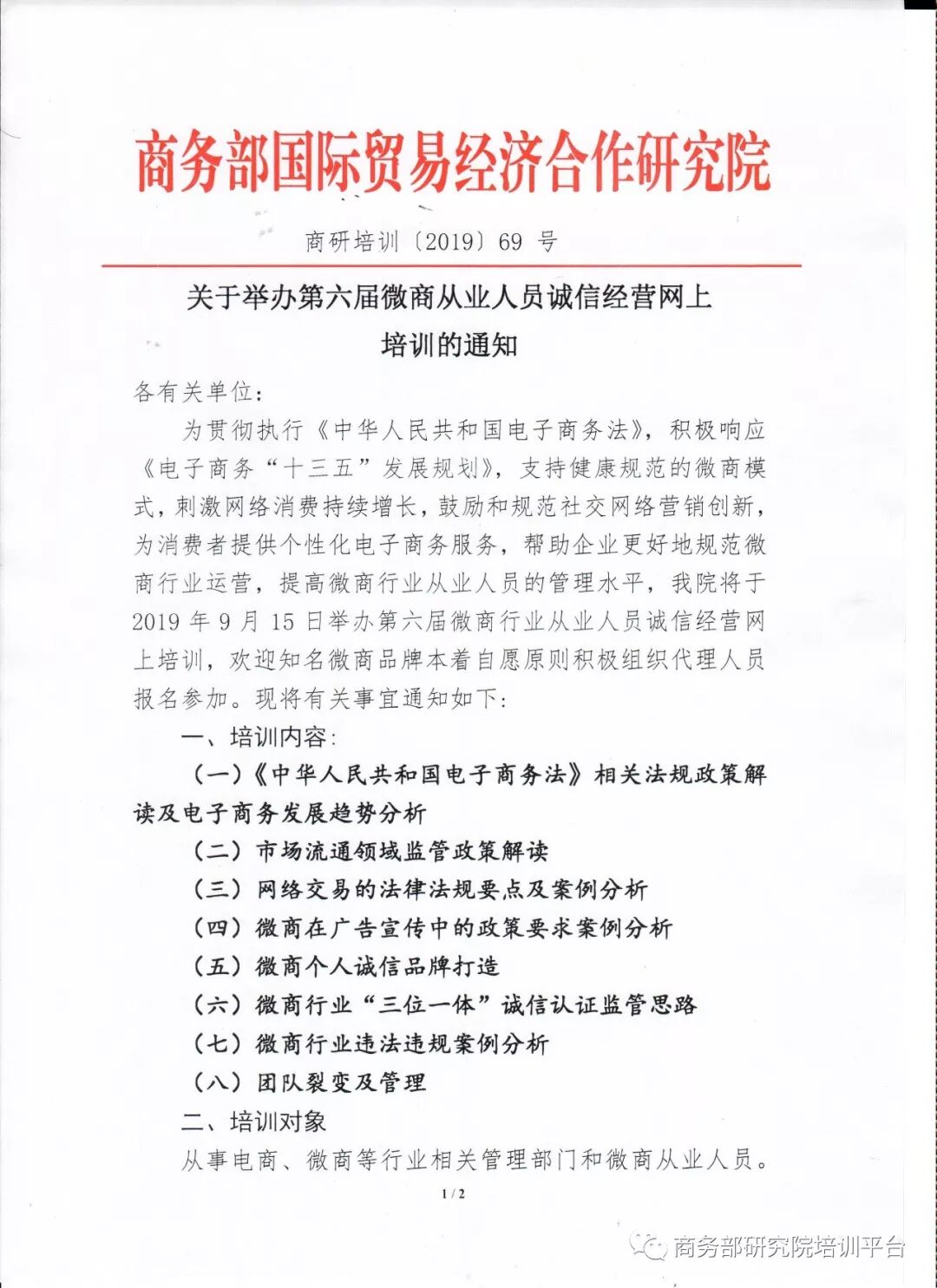 导读:关于举办第六届微商从业人员诚信经营网上培训的通知