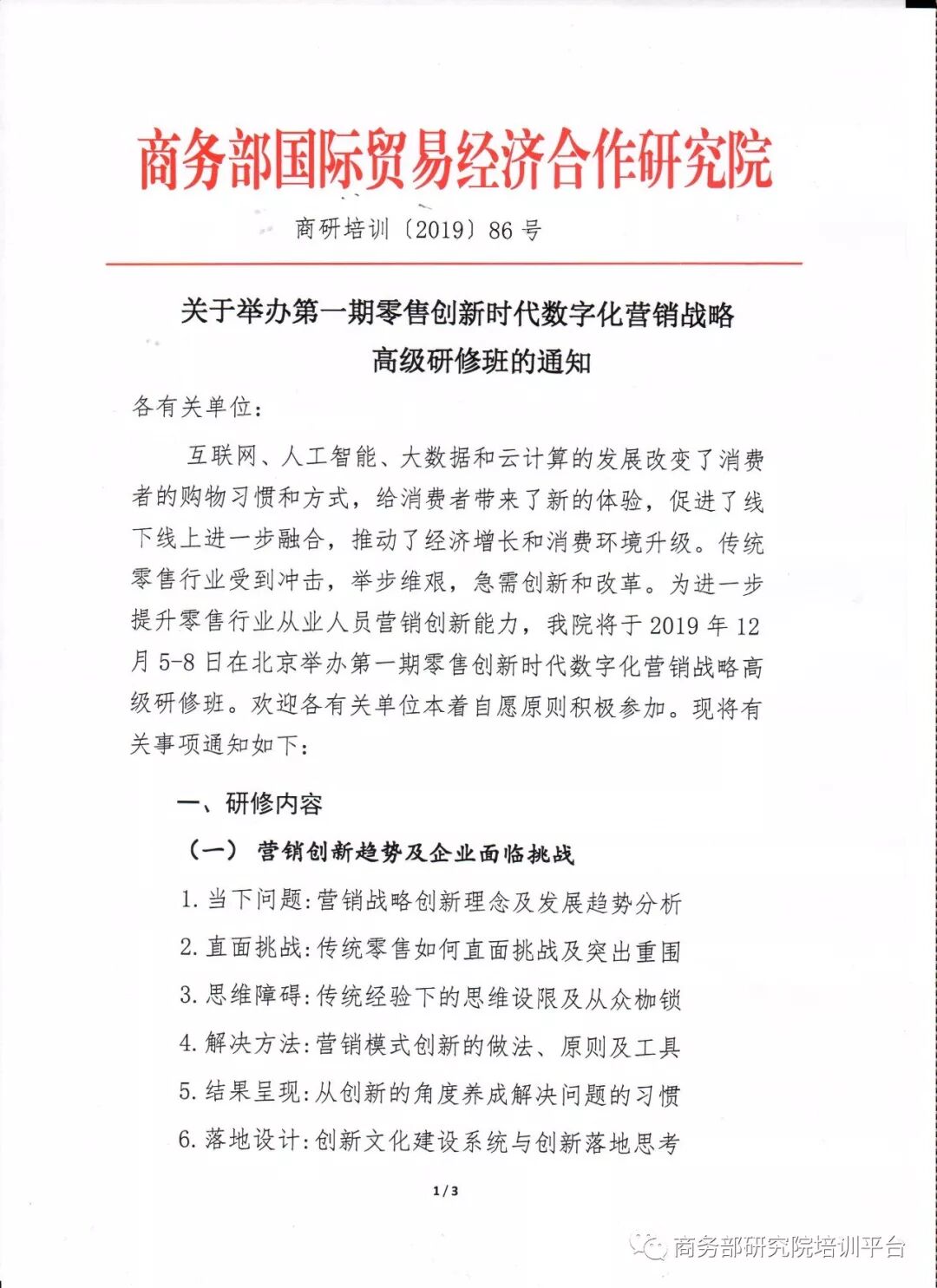 关于举办第一期零售创新时代数字化营销战略高级研修班的通知