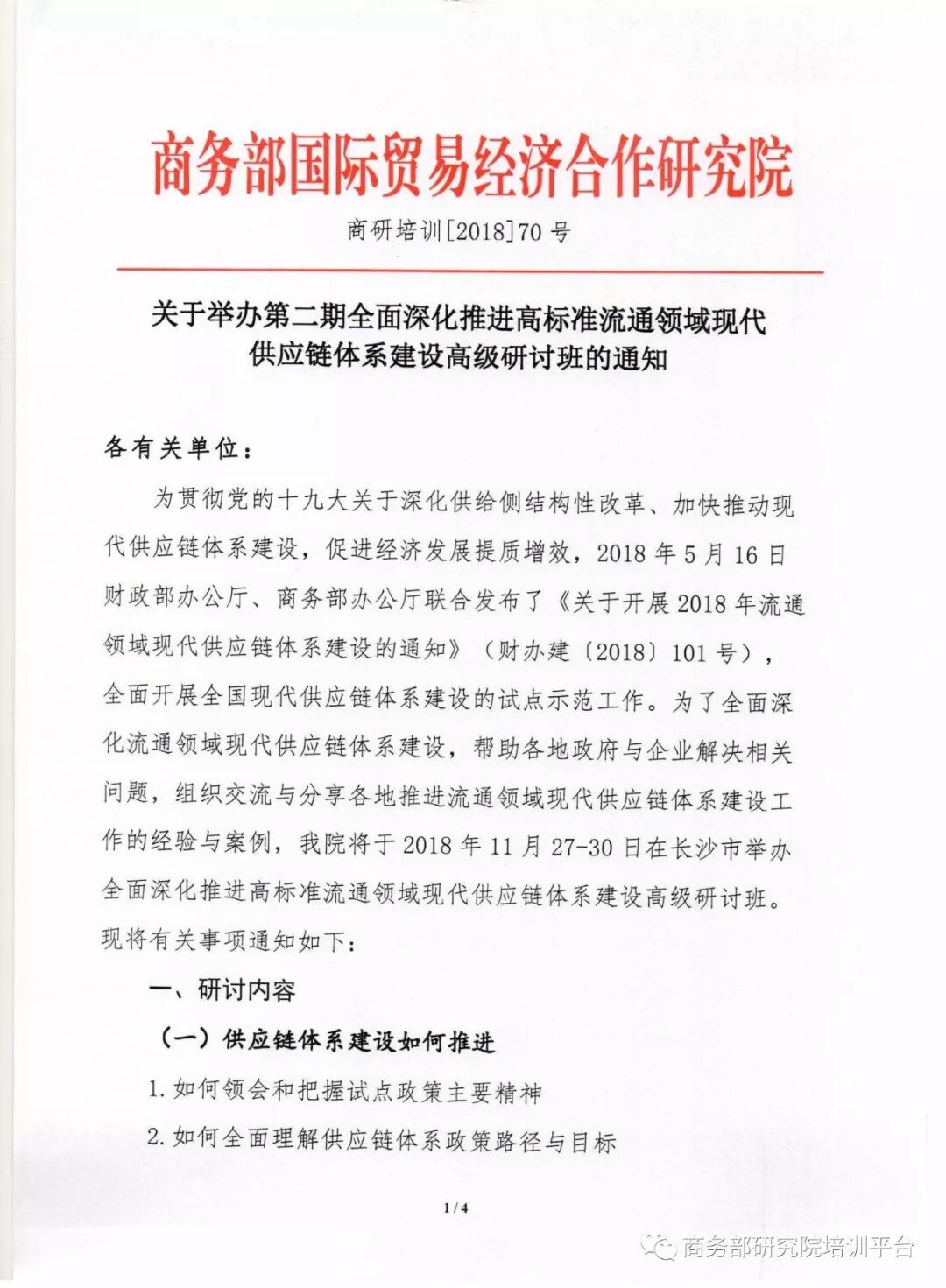 导读:关于举办第二期全面深化推进高标准流通领域现代供应链体系建设高级研讨班的通知