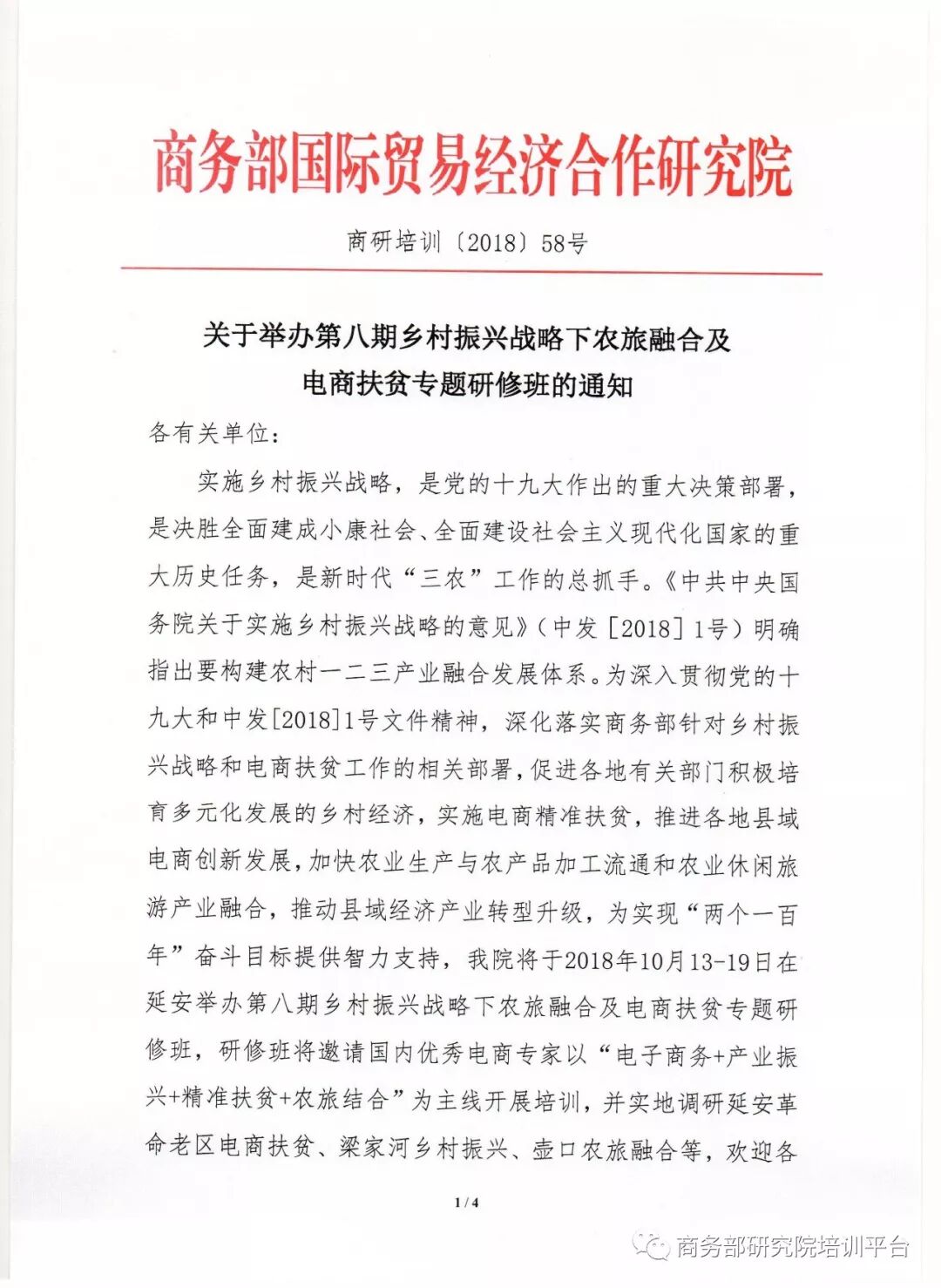 导读:关于举办第八期乡村振兴战略下农旅融合及电商扶贫专题研修班的通知