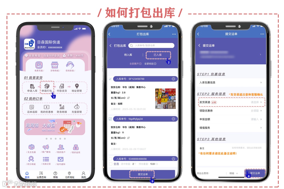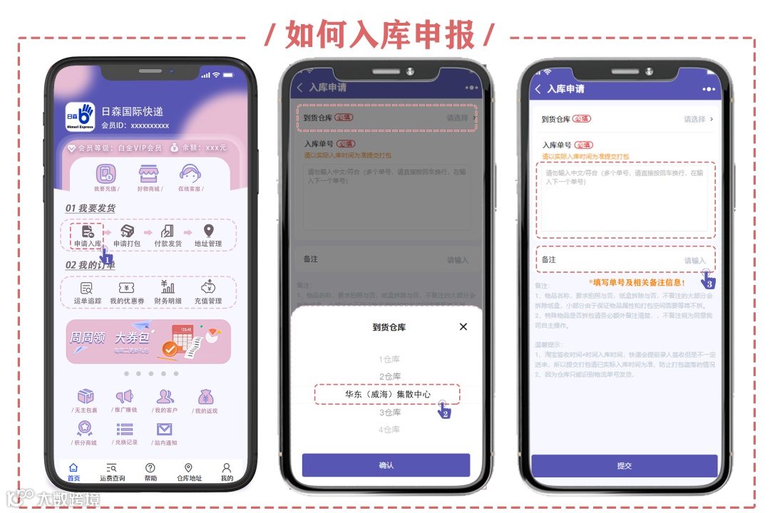 在购买货物后可将物流快递单号复制到【入库申报】,可备注您的需求。日森将尽力完成您的备注需求~