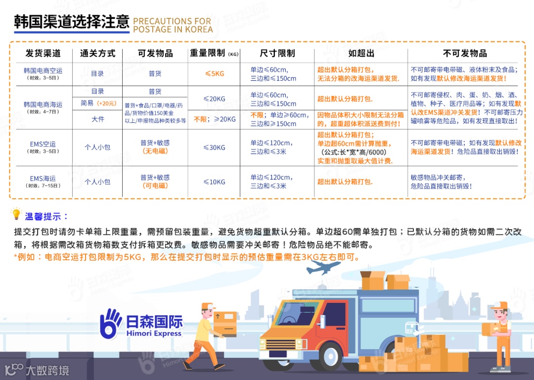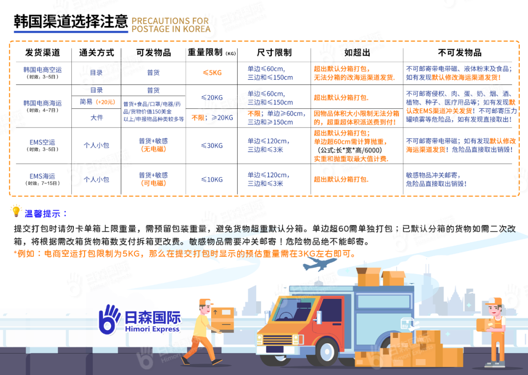 邮寄韩国产生较多的问题