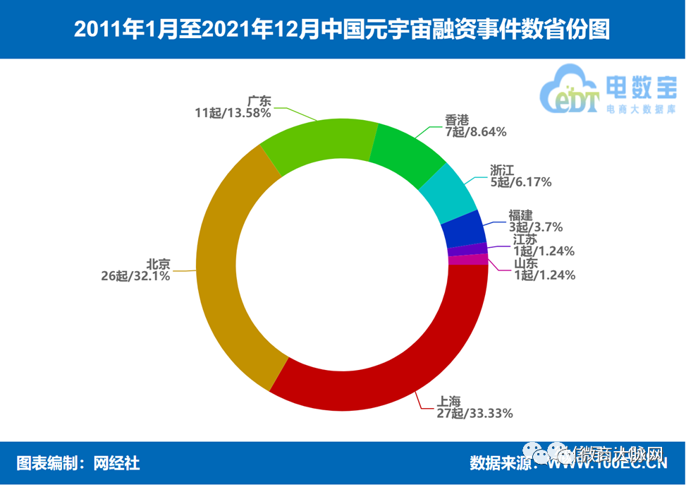 上海的26起融资中,融资总额超23.5亿,占历年元宇宙总融资额的40.81%。从该数据可以看出,上海在元宇宙行业的发展地位,众多元宇宙发展技术公司均布局在上海。